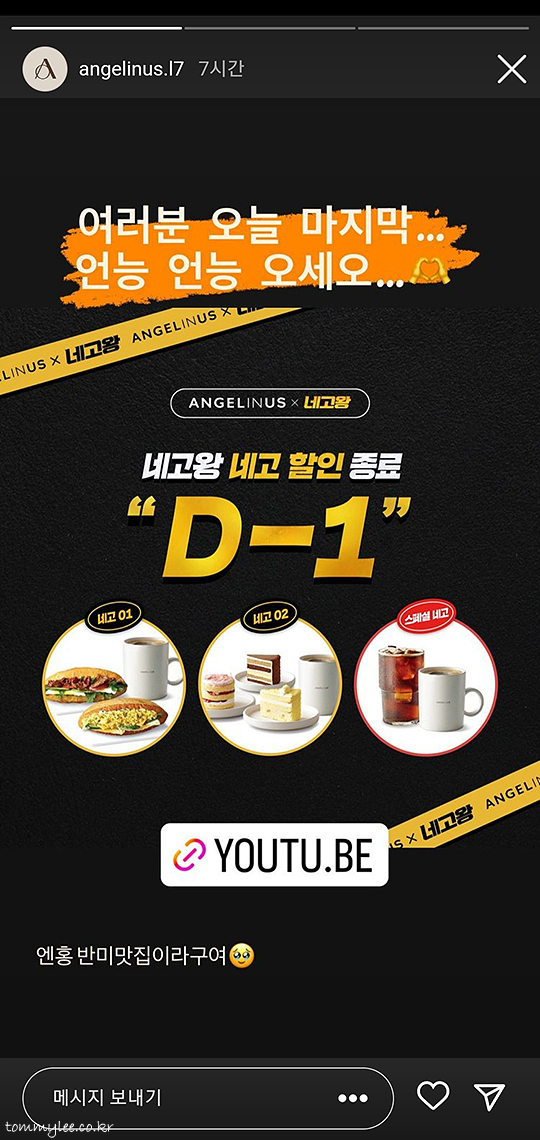 엔제리너스 네고왕 네고할인 마지막 날 방문이었네요.. 친절하게 인스타그램에서 할인 종료 임박을 알려주신 덕분에 잊지 않고 방문할 수 있었네요..