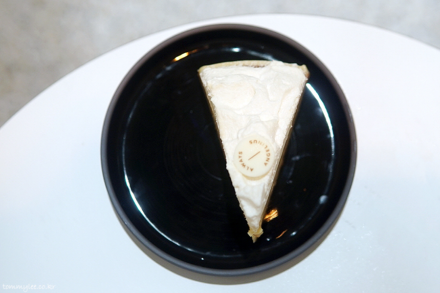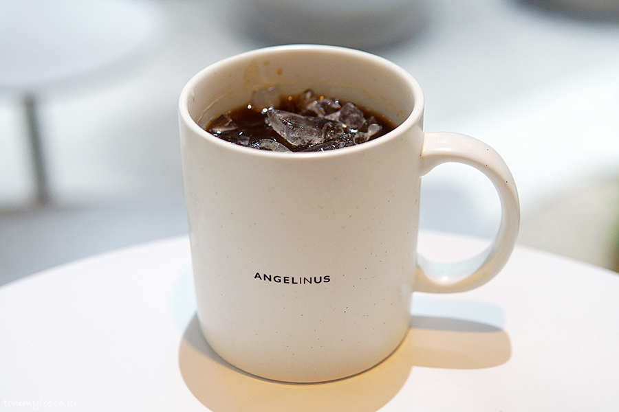 광희찬스로 케이크 + 아메리카노가 균일가 5,500원.. 기왕이면 비싼 케이크를 고르는 게 유리해서 6,500원짜리 크리미 인절미로 골라봤어요.. 동그란 엔제리너스 로고 화이트초콜릿이 귀엽게 올라가네요..