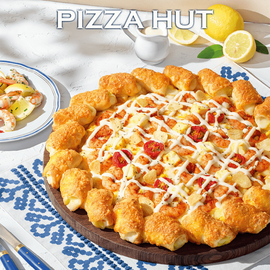 레몬크림 쉬림프 피자는 레몬크림 통새우 토핑과 크림치즈 드리즐, 로스티드 토마토소스가 특징인 듯....