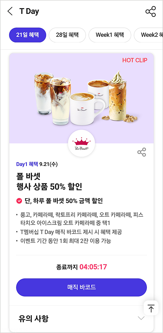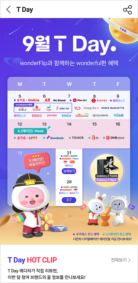 원더플립과 함께하는 원더풀한 혜택~ 9월 T데이.. T멤버십에서 어쩐 일인지 폴바셋 핫클립을 만들어줘서 깜짝 놀랐네요.. 멤버십 프로그램에에 아직까지 진심인 곳은 SK텔레콤뿐인 듯.. KT랑 유플러스도 본받았으면 좋으련만..
