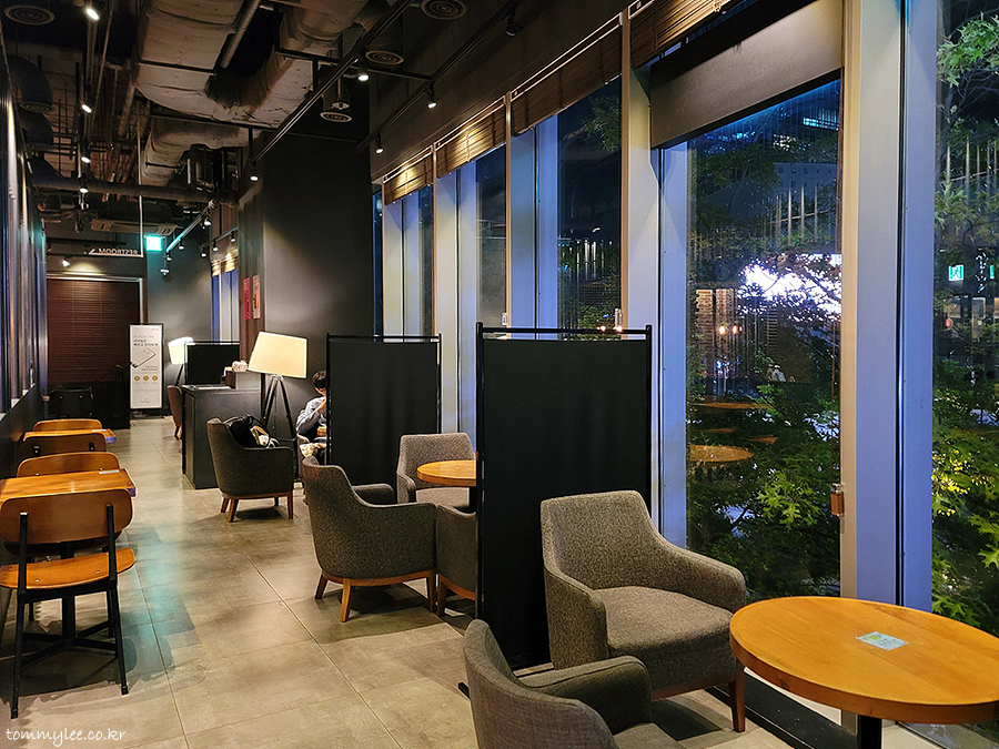 오늘도 밝은 창가 자리로.. 창가 쪽 테이블에 앉으면 스퀘어가 예쁘게 잘 보여요..