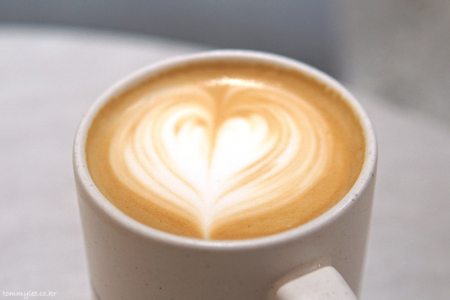 벨베티한 밀크폼에 예쁜 하트모양.. 원두는 에티오피아랑 르완다가 블렌드 된 시트론이 맛있습니다.. 경쟁업체에선 맛볼 수 없는 강력한 아로마와 산미를 두루 갖춘 아름다운 맛..
