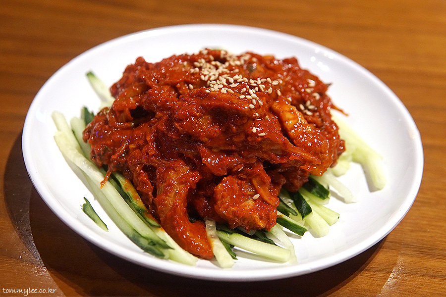보통사람이 그냥 먹기엔 많이 맵고요.. 뭔가 같이 먹어야 하는 메뉴입니다.. 냉면 토핑이 늘 부족하셨다.. 여유롭게 먹고 싶다 하시는 분들은 곁들임 메뉴로 매우 적합해요..