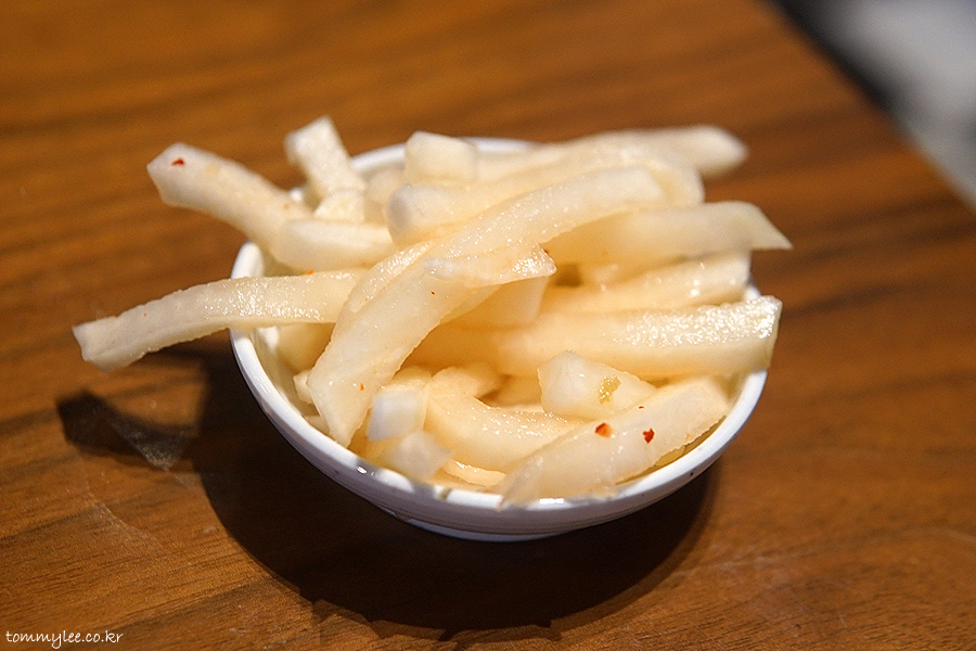 찬은 무채 이거 한가지입니다.. 냉면집이니까요..