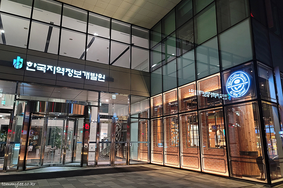 DMC 한국지역정보개발원 빌딩 1층에 늠름하게 자리하고 있는 커피빈의 모습입니다..