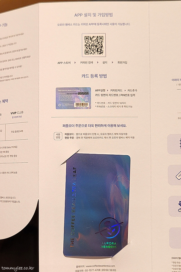 오로라 멤버스 카드는 커피빈앱 등록 시에만 사용이 가능하다고 합니다.. 커피빈앱에서 카드 등록하는 방법이 나와 있고요.. 앱으로 퍼플오더 진행 시 오로라 멤버스 혜택 자동 적용되고 현장 주문 시에는 오로라카드를 직접 제시해야 한다고 합니다.. 지갑 꺼내 귀찮은데 흠..