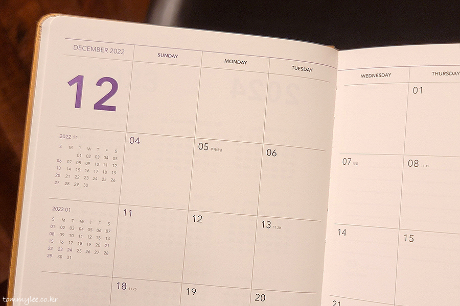 2023 캘린더와 2024 캘린더가 바로 나오고요..