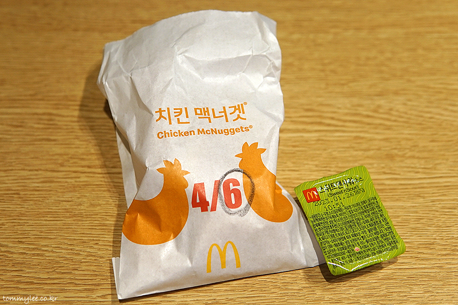 맥도날드앱에 맥너겟 할인쿠폰이 있어서 오랜만에 주문해본 치킨 맥너겟 6조각입니다..