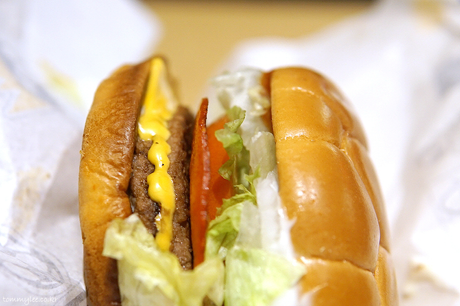 나이프로 커팅해보면 요런 느낌입니다.. 맛있진 않은데 뭔가 맥도날드스러워서 좋았던..