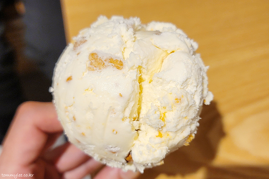 리세스 특유의 퍽퍽한 피넛버터 텍스춰를 재현해내긴 힘들었던 것 같습니다.. 피넛버터 아이스크림이 약간 더 짭짤했으면 좋았을 뻔했네요..