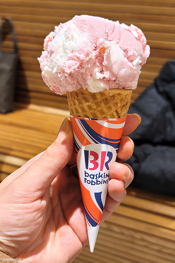 딸기 시즌이기도 하지만 신메뉴라서 주문해 본 핑크 스푼 비긴즈.. 리세스처럼 강력하게 푸쉬하고 있진 않아 세컨드플레이버(?) 정도의 포지션이랄까.. 배스킨라빈스의 상징인 핑크스푼을 오마주해서 나온 아이스크림이라고 합니다.. 아이스크림이 많이 단단했던지 모양이 예쁘게 나오진 않았네요..