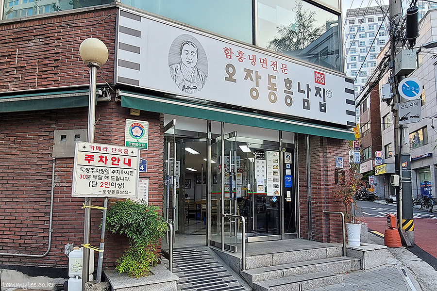 중구청 사거리에서 조금만 발길을 옮기면 닿을 수 있는 오장동 함흥냉면 거리.. 함흥냉면거리라고 하기도 뭐 한 게 함흥냉면집이 2곳뿐입니다.. 신창면옥이 평택으로 내려간 지가 오래전이라.. 현재 오장면옥과 흥남집만 있음.. 파란 간판의 오장동 함흥냉면은 내수부리 당첨.. 오늘도 여기서 함흥냉면을 못 먹네요.. 흥남집보단 여기가 더 맛있는데 아쉽..