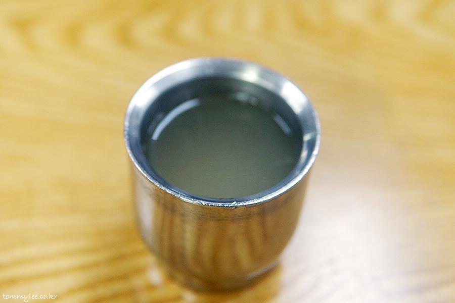 주문 후 바로 제공된 육수.. 별로 맛은 없지만 뜨끈한 맛에 호로록..