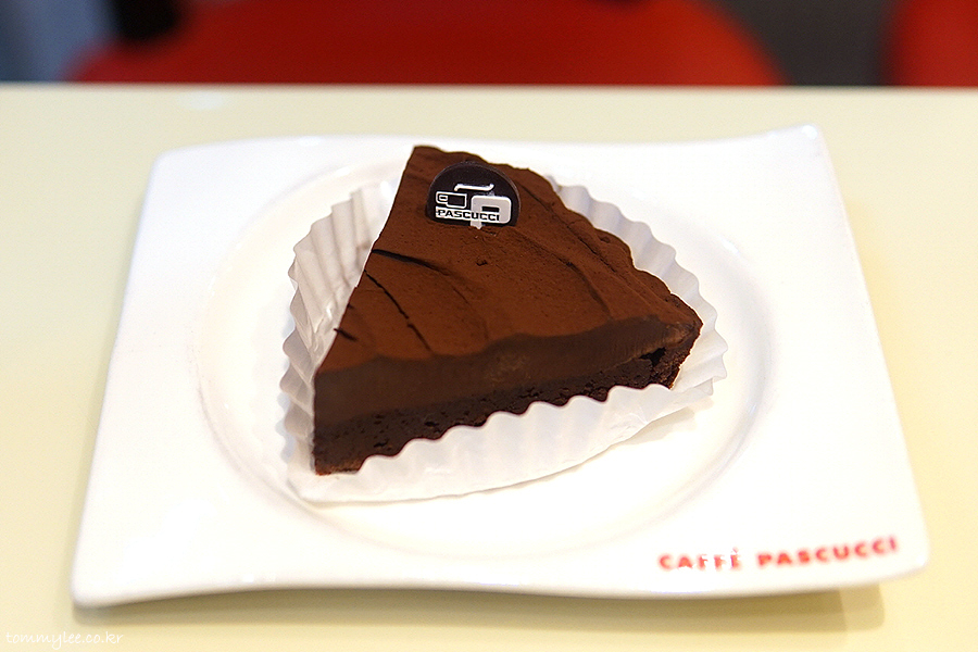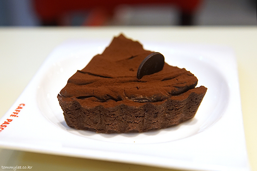 최근 자주 먹고 있는 파스쿠찌 케이크입니다.. 초콜릿 타르트 생지에 초콜릿 퍼지, 다크 가나슈에 코코아 파우더 그리고 로고초콜릿..