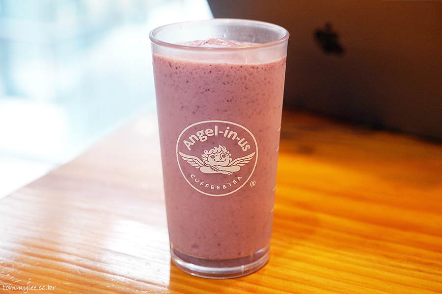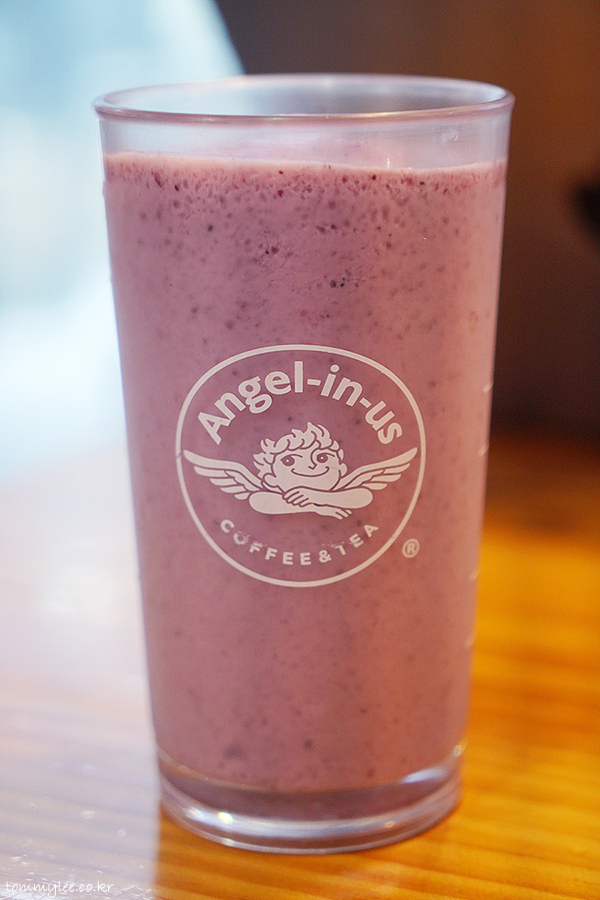 엔젤인스노우는 아주 곱게 블렌드 되어 부드럽게 그냥 쭉쭉 들어간답니다.. 요거트 블렌디드라 소화도 잘될 것 같은 기분.. ㅋㅋㅋ.. 엔제리너스 블렌디드 음료는 실키한 텍스처가 매력인 듯..