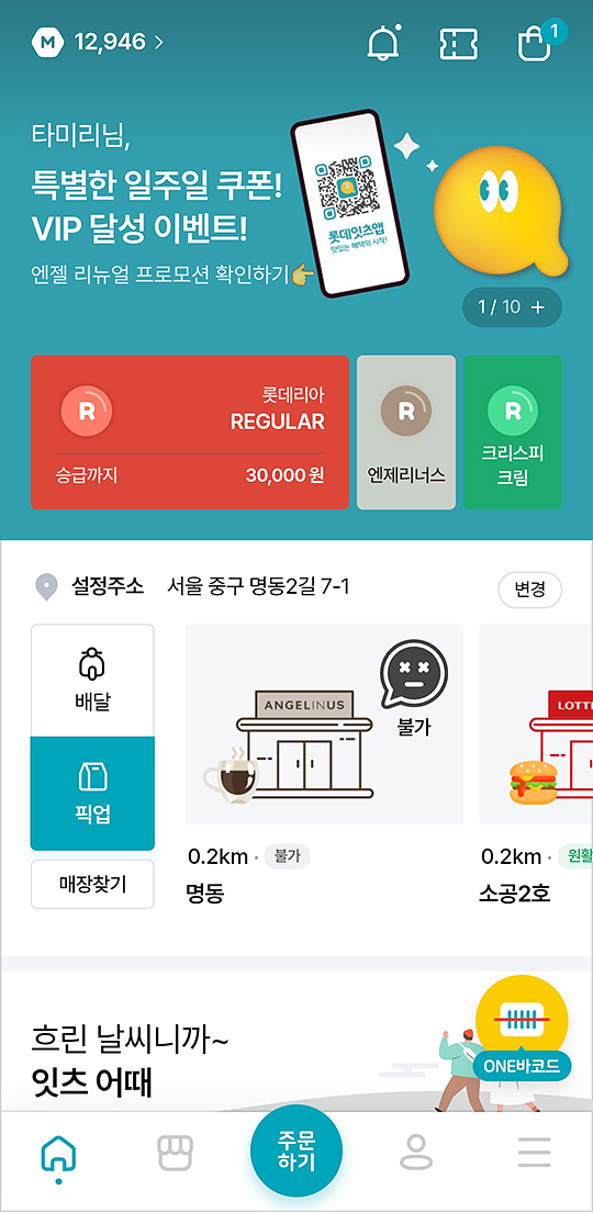 롯데잇츠앱이 리뉴얼되어서 이렇게 귀엽게 바뀌었답니다.. 전엔 많이 딱딱한 느낌이었는데 귀엽고 깜찍한 이미지로 탈바꿈.. 기본 컬러가 확 바뀌어서 이게 잇츠앱인가 싶기도 해요..