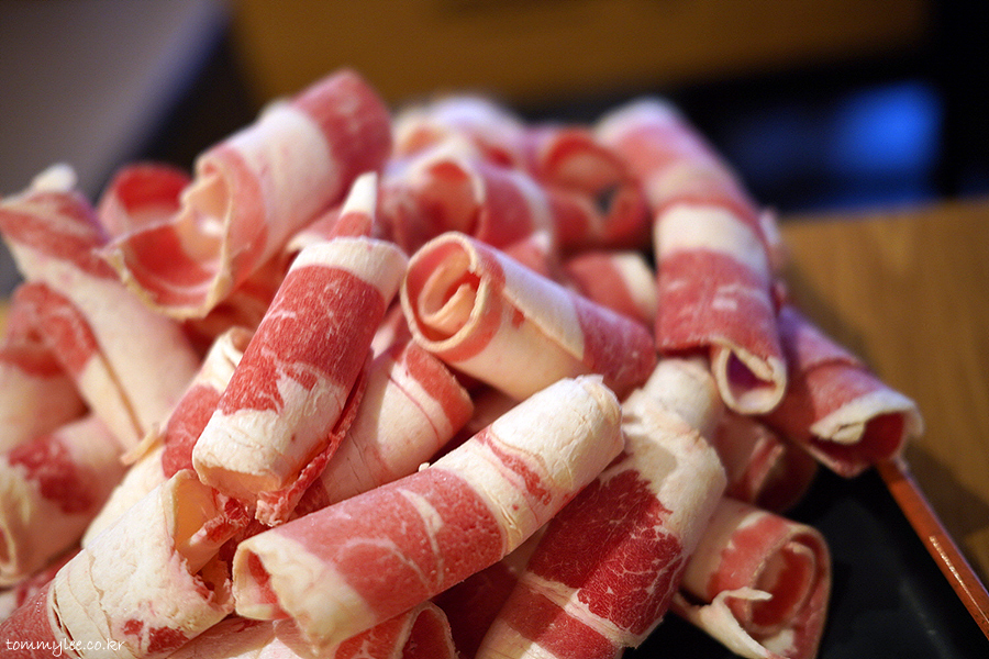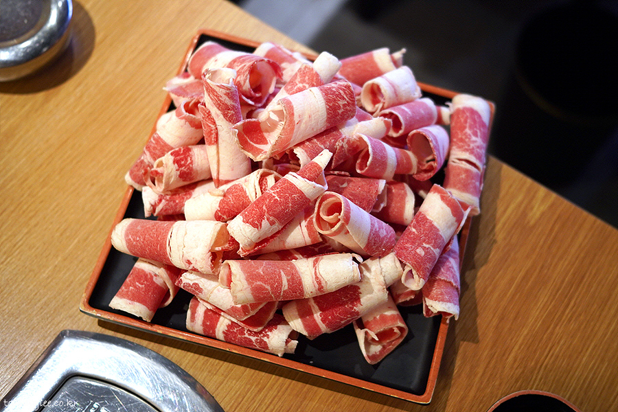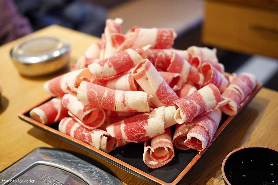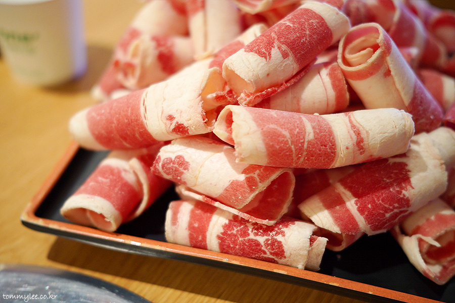 대패삼겹살처럼 돌돌 말려서 나온 차돌삼겹입니다.. 4인분 양이 되겠습니다.. 꽤 에어리 해 보여서 과연 1근 양이 맞나 의심스러워서 살짝 저울에 달아보고 싶은 기분이었네요.. ㅋㅋㅋ..