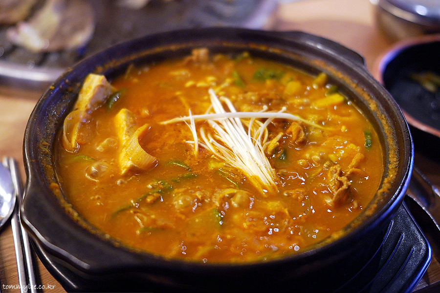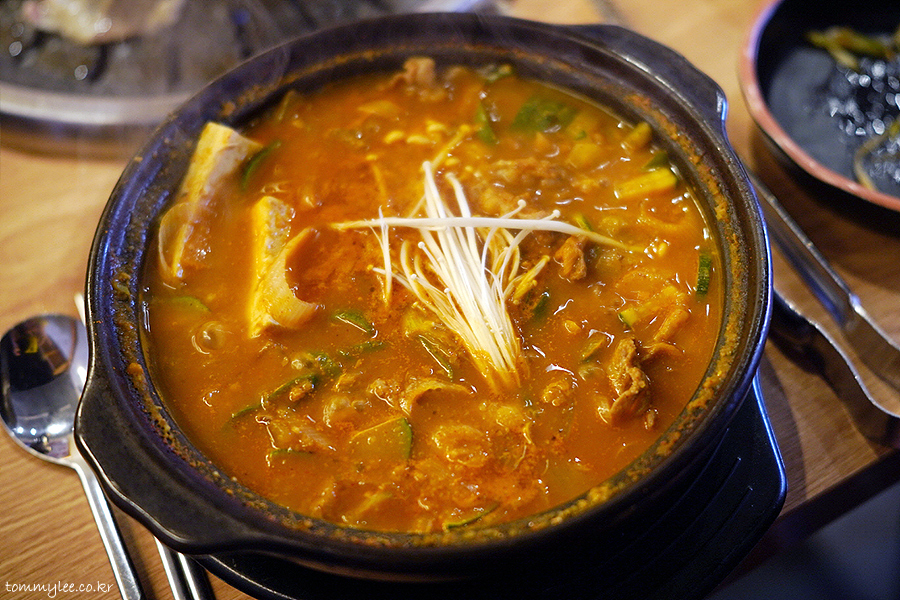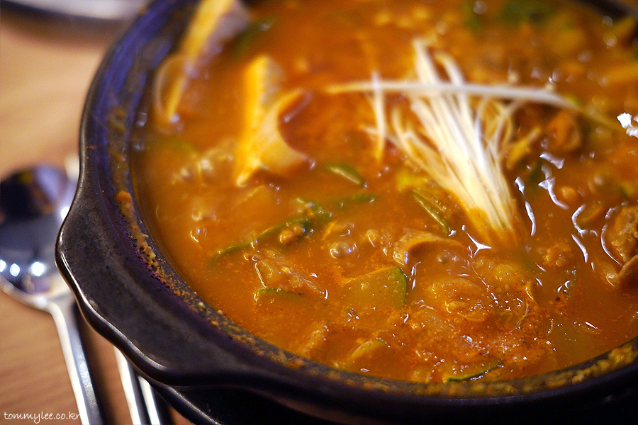 고깃집의 된장찌개답게 고기가 충실히 들어가 있고 버섯을 비롯한 야채와 두부도 넉넉한 양이 들어가 있습니다.. 건더기가 알차게 들어간 기분이고.. 전체적으로 상당히 푸짐하고 해서 지인분께서 왜 이된장 이된장 노래를 부르신 건지는 이해했어요..