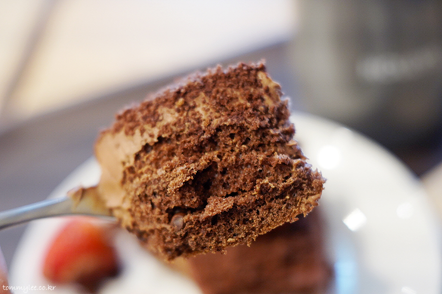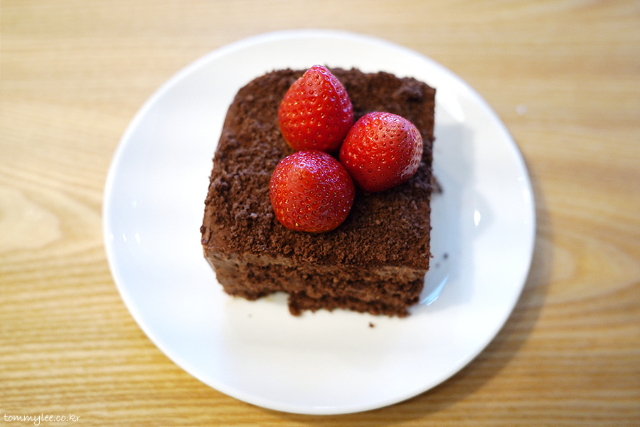 이건 뭐 우린 부끄러움 따윈 없다는듯이 그냥 대놓고 따라한 메뉴입니다.. 딸기 장식 3개에, 초코크림-초코시트 3단, 중간에 크런치볼 들어간 것까지 투썸플레이스 떠먹는 스트로베리 초코 생크림 케이크와 정말 똑같음..