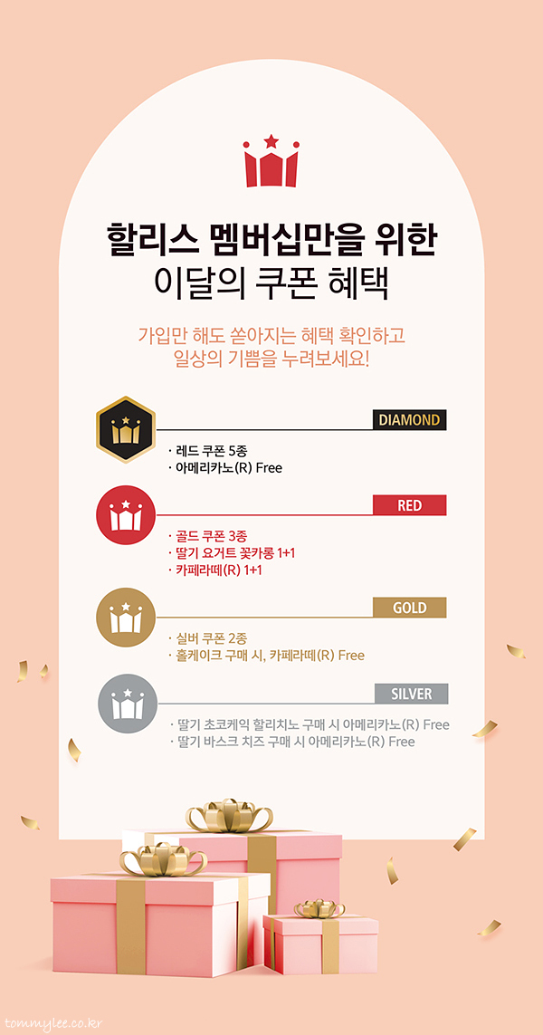 할리스 3월 멤버십 쿠폰팩을 잠시 점검하고 넘어가도록 하겠습니다.. 실버 : 딸기초코케익할리치노 구매 시 아메리카노 무료, 딸기 바스크 치즈 구매 시 아메리카노 무료 / 골드 : 홀케이크 구매 시 카페라떼 무료 / 레드 : 딸기요거트꽃카롱 1+1, 카페라떼 1+1 / 다이아몬드 : 아메리카노 무료.. 평이한 수준의 3월 쿠폰팩이네요..