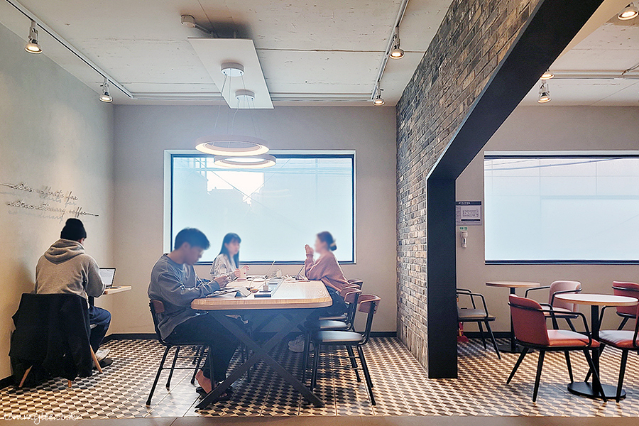카페라떼와 케이크를 받아서 2층으로 이동.. 명지대점 2층은 뭐 요런 느낌..
