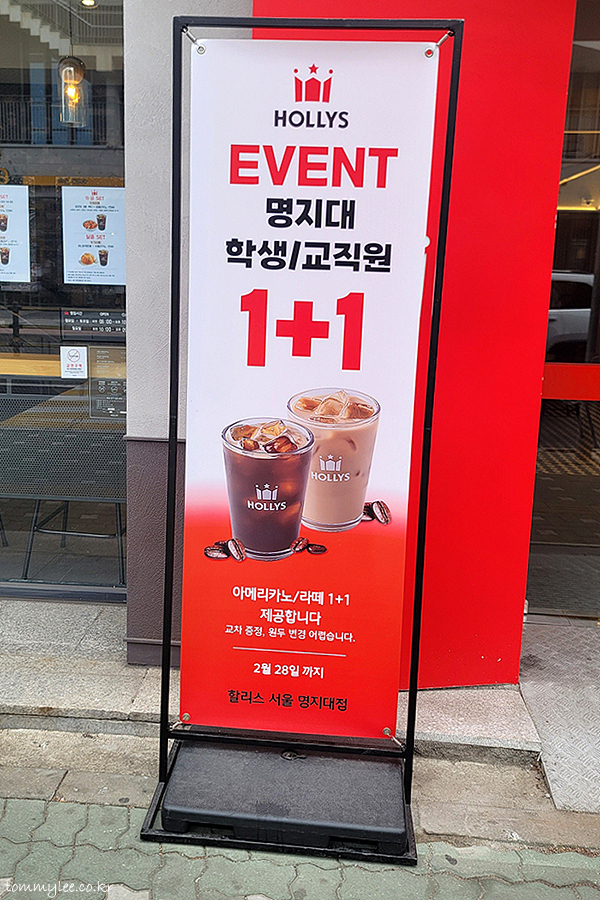 방학이라서 그렇겠지만 명지대 학생/교직원 아메리카노 라떼 1+1 이벤트가 있네요.. 제가 2월 말일에 방문해서 오늘까지지만 흠.. ㅋㅋㅋ..