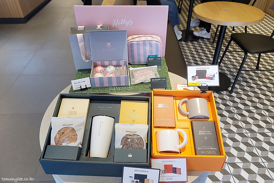 이쪽은 할리스 골프공 세트와 함께 핸들 파우치와 릴타월 등을 선보이고 있는 모습.. 모먼츠 오브 딜라이트 1호 세트와 2호 세트의 모습..