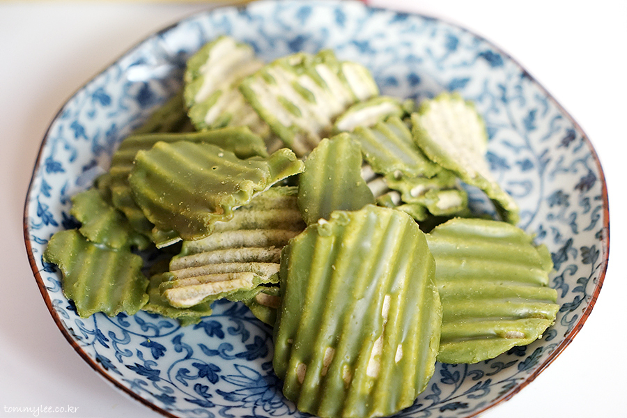 짭조름한 포테토칩에 초콜릿을 입혀 사실 맛이 없을 수가 없죠.. 그야말로 단짠의 정석.. 상상했던 것보다 말차향이 훨씬 더 강했습니다..