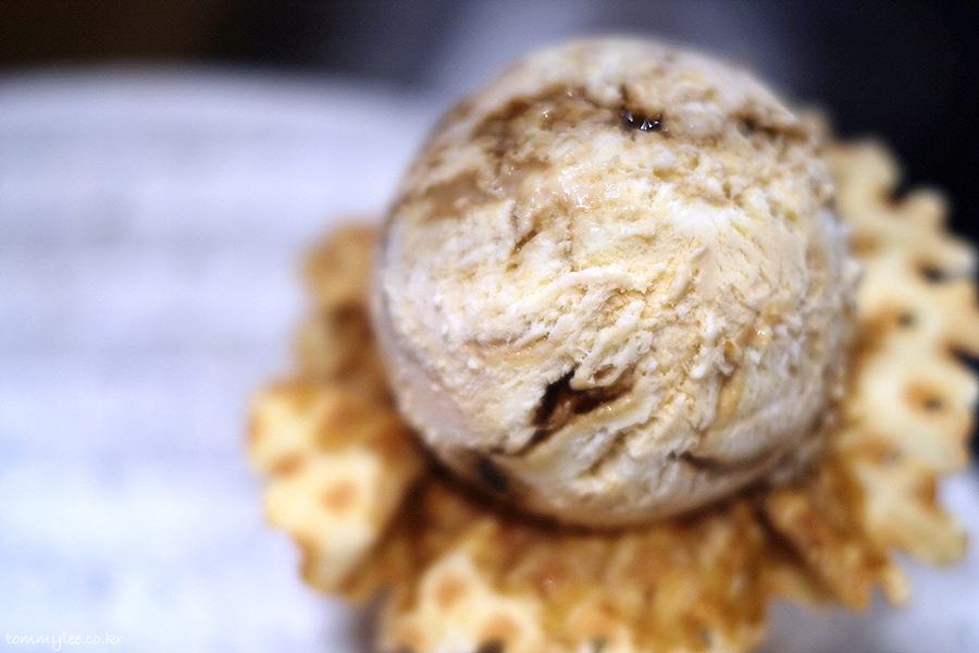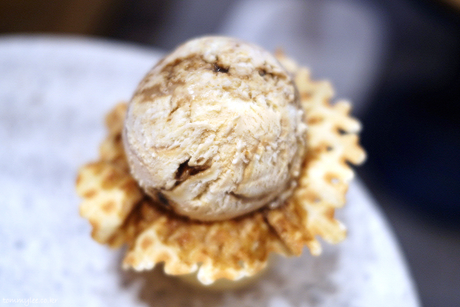 밀크티 아이스크림에 까망베르 치즈 아이스크림에 블랙슈가 리본을 둘러 호랑이 무늬를 연출했네요.. 과연 맛은 어떠할는지..