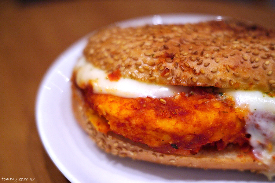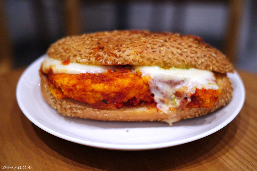 닭가슴살이 상당히 두툼해서 볼륨감이 있고.. 프레시 모짜렐라를 사용했기 때문에 치즈 텍스처가 부드럽습니다..