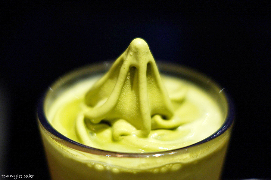 오늘은 바로 이 제주 말차 아이스크림 라떼를 먹기 위한 방문이었습니다.. 유기농 제주 아이스 말차 라떼 위에 유기농 제주 말차 아이스크림을 올렸습니다..
