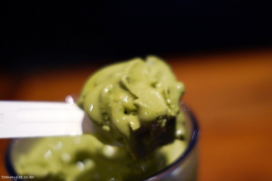 함께 제공된 아이스크림 스푼으로 제주 말차 아이스크림을 일단 퍼묵하고 스타트.. 진한 말차맛 좋네요..