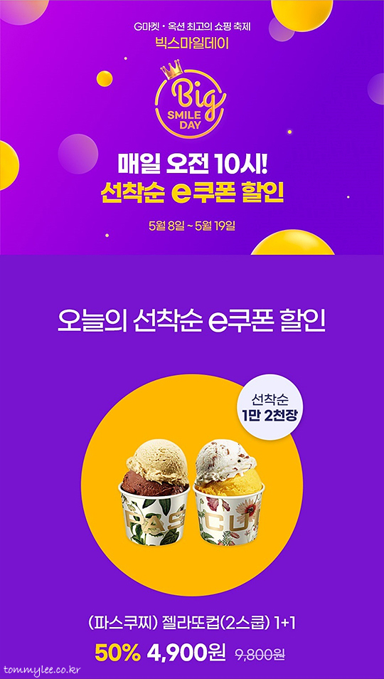G마켓 옥션 최고의 쇼핑 축제~ 빅스마일데이.. 파스쿠찌 젤라또컵 2스쿱 1+1.. 젤라또를 원플원 해준다고??.. 4,900원에 4스쿱??.. 이건 도저히 안 살 수가 없었습니다.. G마켓이랑 옥션에서 모두 구입.. ㅋㅋㅋ..