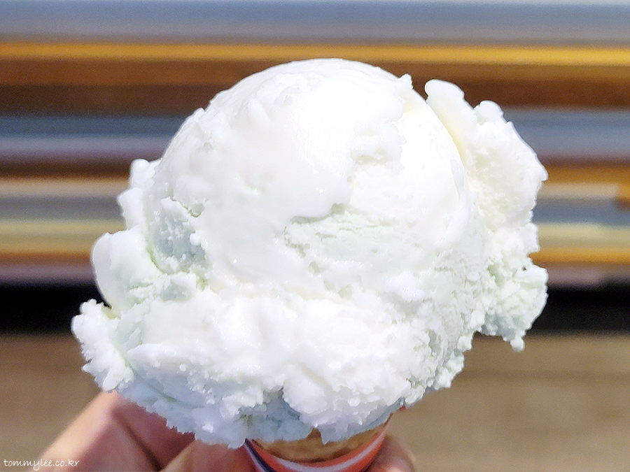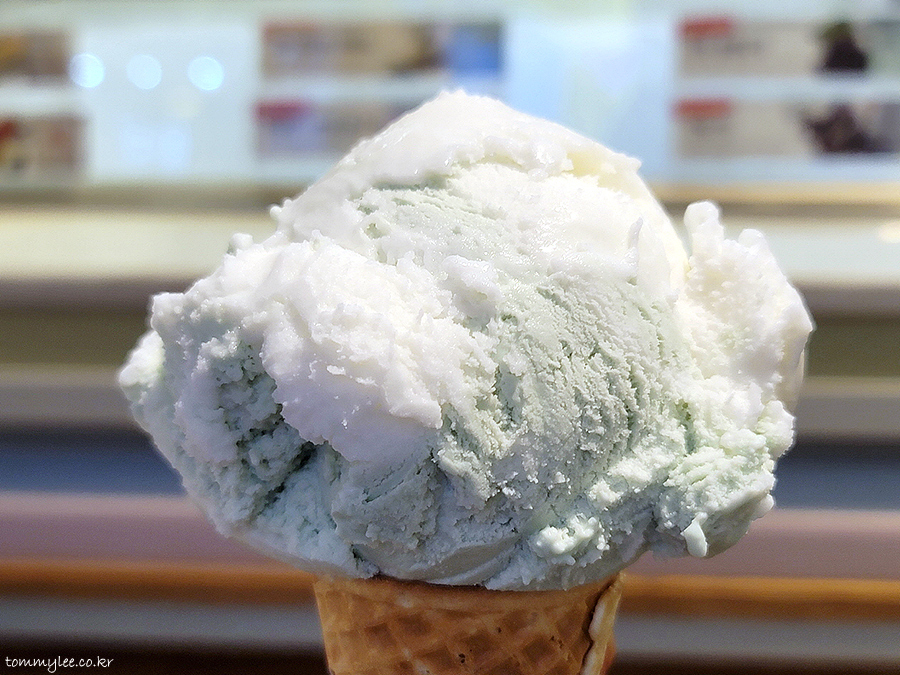 청사과 사베트에 민트 아이스크림 조합인데.. 식후에 먹으면 딱 좋을만한 그런 느낌의 아이스크림이랍니다.. 산뜻하면서도 상쾌한 이 맛 그리웠다고요.. 잘 돌아와 줬어요.. 인기 없는 플레이버라 조만간 또 들어가겠지만.. ㅡㅡㅋ..