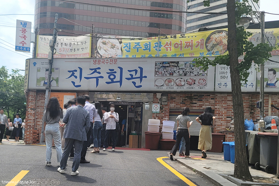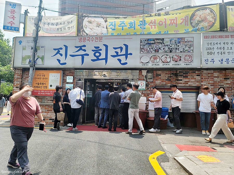 지인분께서 진주회관 콩국수 먹으러 가자고 하셔서 조금 이른 점심시간에 서울 콩국수의 대명사인 진주회관을 찾게 되었습니다.. 12시~1시 피크 시간대에 가면 많이 기다려야 해서 11시30분에 방문했어요..