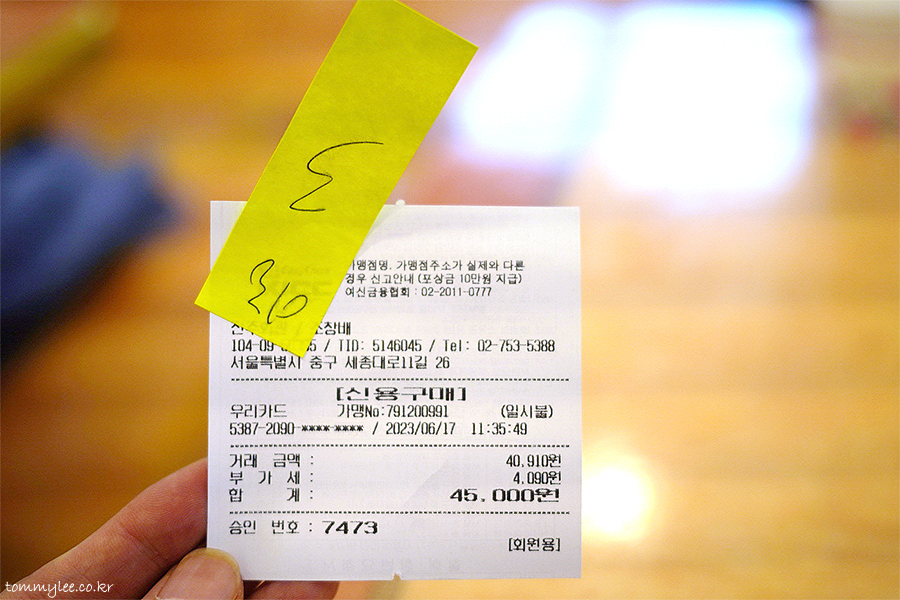 2층에 앉으니 안좋은 게 있네요.. 주문 및 결제를 1층 캐셔로 내려가서 하고 오라고.. 엥??.. 암튼 처음 캐셔로 가서 콩국수 3인분 45,000원 결제 완료..