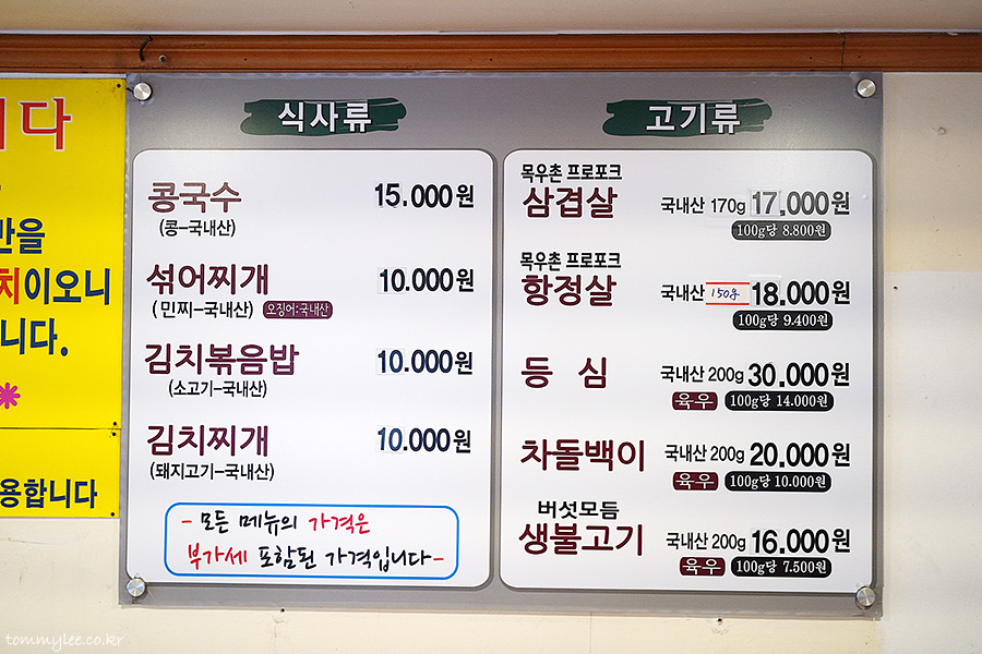 콩국수 13,000원→15,000원으로 가격이 2,000원 올랐습니다.. 콩국수 외 식사류 1,000원 인상, 고기류 2,000원 인상입니다..