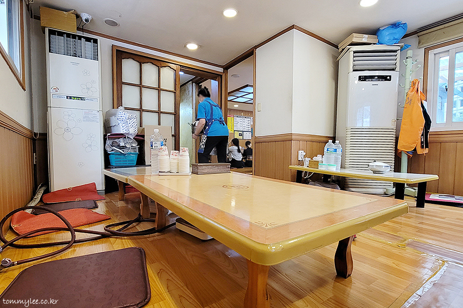일찍 와서 5분 정도 기다린 후에 들어갈 수 있었는데.. 2층으로 올라가라고.. 진주회관 2층 이용은 처음이네요.. 뭐 이런 느낌이고 생각보다 공간이 넓었고요.. 좌식이라 신발을 벗고 들어 오셔야 한답니다.. 입식 테이블을 원하시면 1층을 고집하시길.. 그나저나 시즌 비시즌이 너무나도 확실한 집인데 겨울에 리모델링 좀 하시지.. 2층은 너무 낡았더라고요..