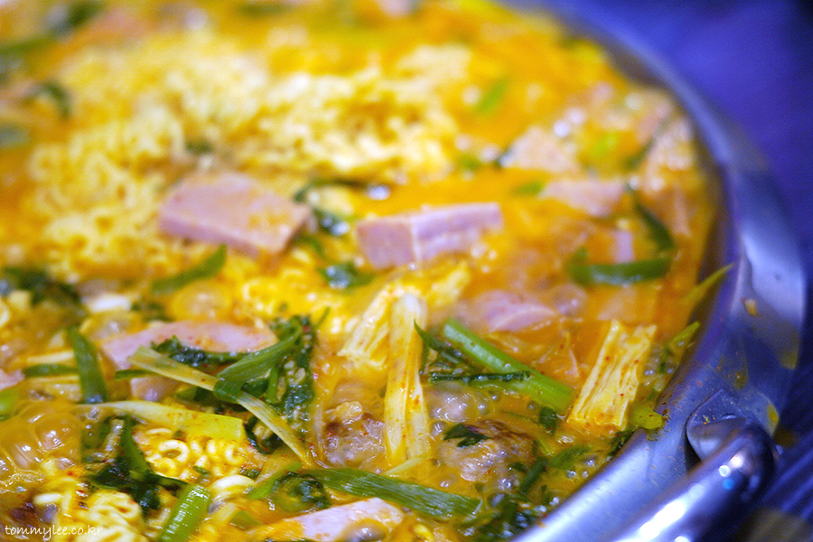 SPAM BUDAE JJIGAE.. 스팸 부대찌개.. 가격 : 1인분 11,000원.. 스팸부대찌개 3인분 주문한 모습..