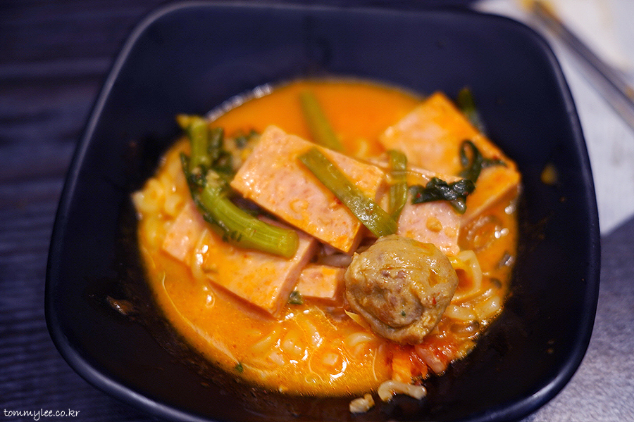 부대찌개가 원래는 이런 느낌으로 나온다고 합니다.. ㅋㅋㅋ.. 민찌 대신에 미트볼이 들어가고 두부 대신 푸주가 들어가는 게 특이하네요..