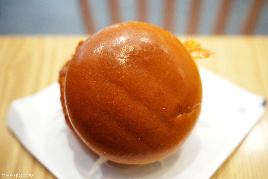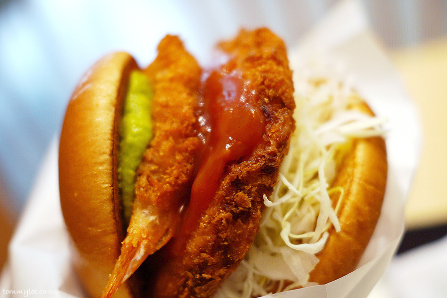 어메이징 쉬림프 버거를 꺼내보면 이런 느낌.. 새우패티 위에 또 새우를 올린 더블 새우버거가 되겠습니다.. 기존 새우카츠버거와는 완전히 다른 신메뉴..