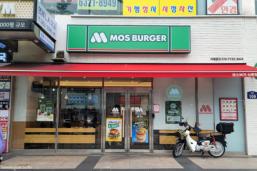 MOS BURGER.. SHINCHON.. 모스버거 신촌점.. 아주 옛날에 현대백화점 유플러스 지하에 매장이 있었다 폐점해서 한동안 신촌에서 모스를 만날 수는 없었는데.. 작년 요맘때 신촌대로에 새로 오픈했습니다.. 벌써 1주년이라니 정말 시간 빨리 가네요..