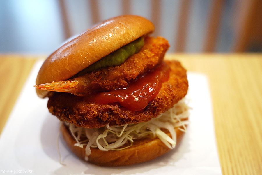 새우 한 마리를 그대로 튀겨낸 버터플라이 새우가 포인트인데.. 통새우살패티 볼륨에 맞춰 한마리를 더 넣었더라면 더 좋았을 뻔했는데 그러면 가격이 9천원 정도로 올라가는지라 여의치는 않았던 듯하네요..