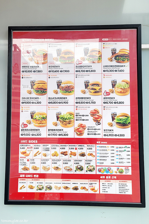 모스버거 신촌점 메뉴판.. 모스는 전체 메뉴판이 매장 밖에 이렇게 명쾌하게 나와 있어서 좋아요..