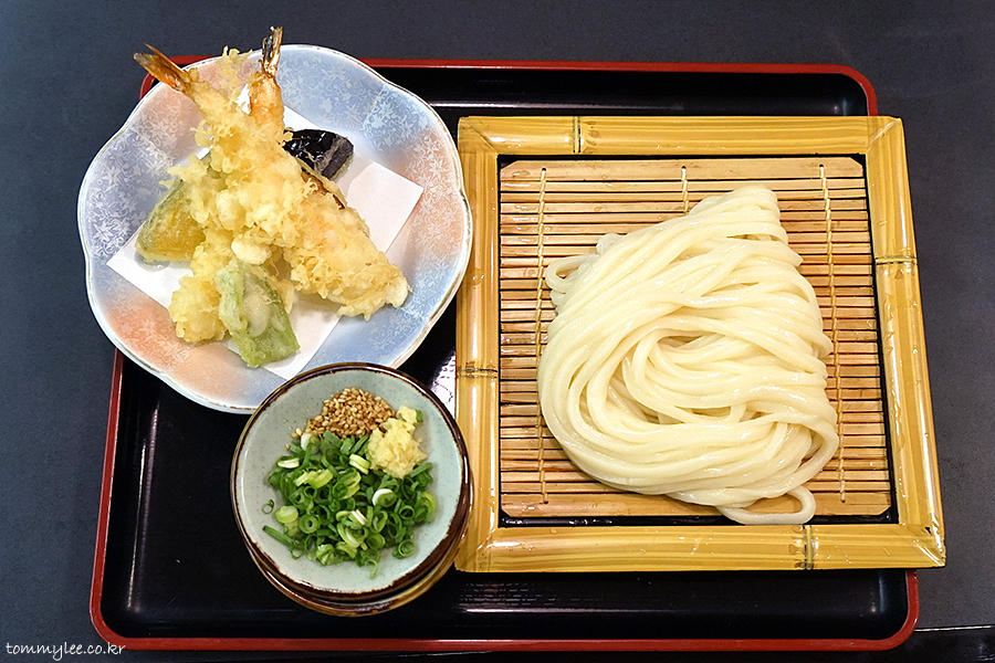 텐자루우동입니다.. 자루우동에 텐푸라가 나오는 우동이 되겠고요.. 텐쯔유가 따로 나오진 않았네요..