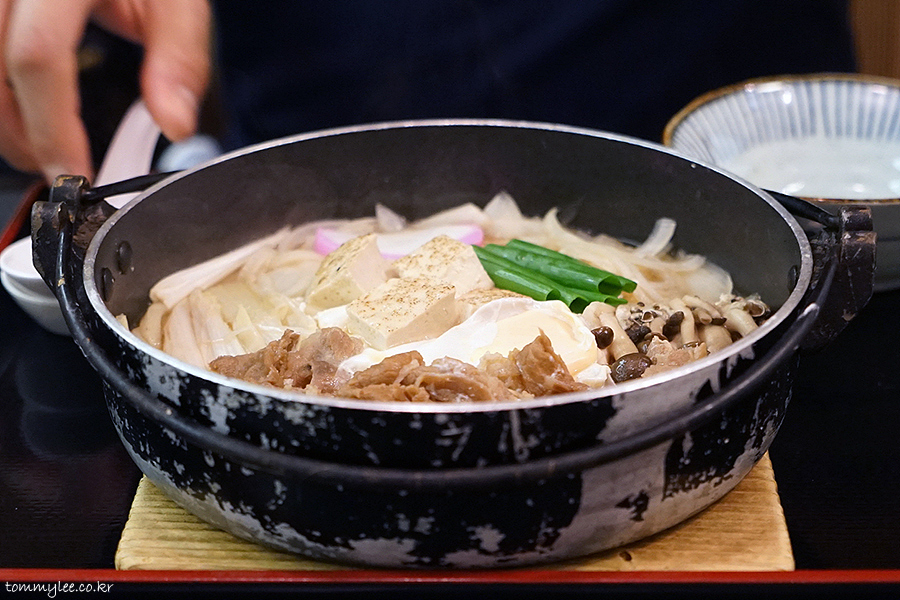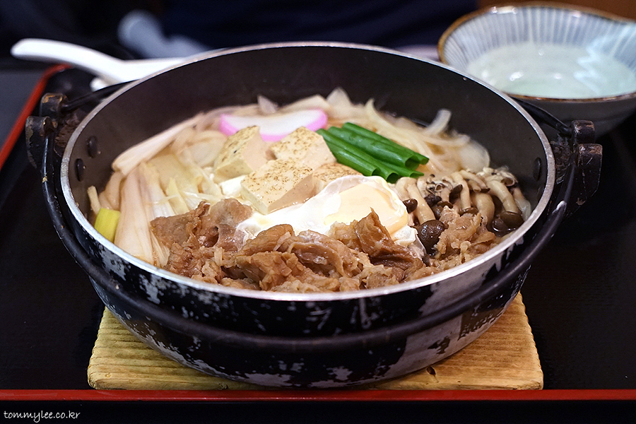 지인분께서는 나베우동이 드시고 싶으시다고.. 가장 비싼 스키야키나베우동으로 호화스럽게 가고 싶으시다고.. 스키야키가 제일 비쌌지만 그래도 천엔 언더니까 비싼 거 먹어도 부담이 전혀 없었어요.. ㅋㅋㅋ..