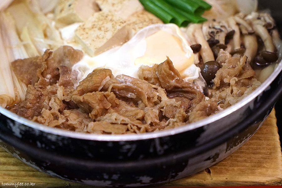 상당히 본격적인 스키야키의 기분입니다.. 우동이 하나도 안보이지만 나베 우동입니다.. 토핑들 아래는 전부 우동이 깔려 있다고 보시면 됩니다..