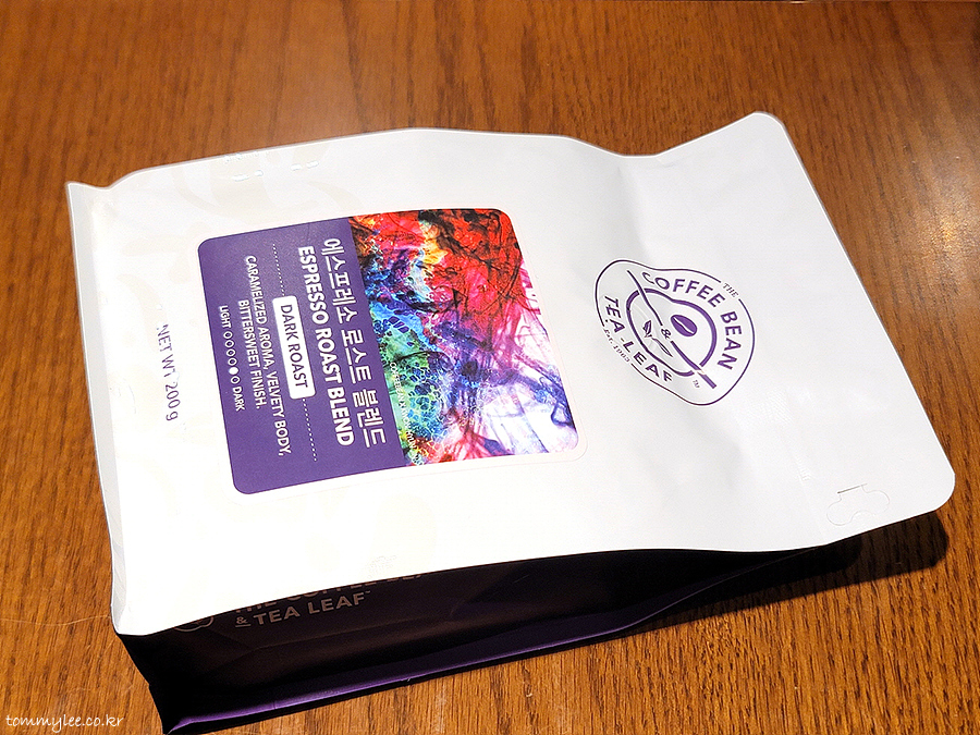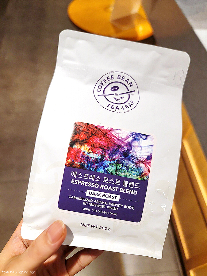 오랜만에 에스프레소 로스트 블렌드 도전해보기로.. 커피빈 기본 원두가 되겠고요.. 다들 아시다시피 카라멜라이즈드 아로마, 벨베티 바디, 비터스위트 피니쉬가 특징인 원두라고 합니다..