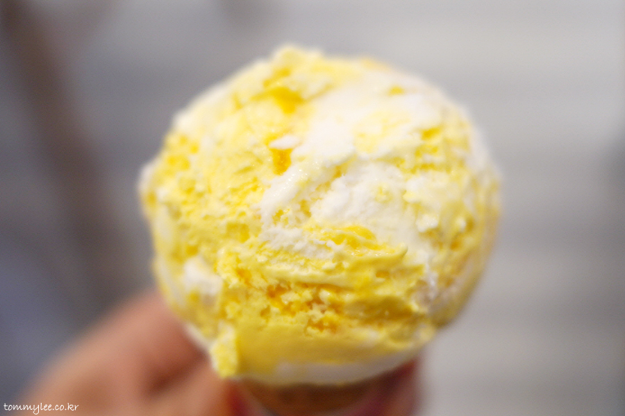 알폰소망고 아이스크림에 유기농 우유 아이스크림, 망고 리본, 망고 과육이 들어간 본격 망고 아이스크림이 되겠어요.. 최근 나온 라이언 망고 마카롱과는 전혀 다른 맛의 망고 아이스크림..