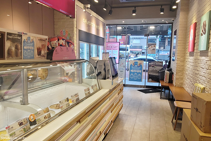 거짓말처럼 손님이 아무도 없었던 이대 배스킨라빈스.. 먹고 가기에 정말 좋은 배스킨라빈스 매장이라고 막.. ㅋㅋㅋ..